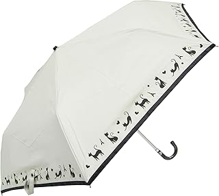 軽量 晴雨兼用 日傘 折りたたみ傘 UVカット 紫外線99%カット ネコ柄 折りたたみ 50cm ミニ傘 (アイボリー)