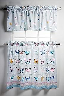 Maison d' Hermine コットン100% 春の花の3点セット キッチンウィンドウカーテン カフェ キッチン 寝室 ホーム 2段 (28インチ x 36インチ) 飾り布1枚 (56インチ x 18インチ)