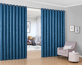 エクストラロング 120インチ長カーテン パティオドア 保育園 スカイブルー 無地 部屋を暗くするドレープ グロメットトップ 遮光カーテンパネル 幅60インチ セルリアン 2枚