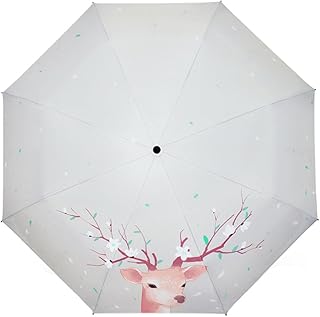 SoreSore(ソレソレ) 日傘 uvカット 遮光 折りたたみ かわいい レディースおしゃれ 折りたたみ傘 軽量 アニマル 鹿 エレガントホワイト グレー 雨傘 晴雨兼用 丈夫 8本骨 プレゼント 収納ポーチ付き