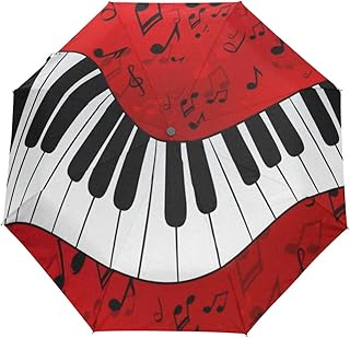 折り畳み傘 自動開閉 超軽量 音符柄 ピアノ柄 音楽柄 レッド 日傘 折りたたみ 晴雨兼用 かわいい 丈夫な8本骨 おしゃれ レディース UVカット 遮光効果 耐風撥水 収納ポーチ付き