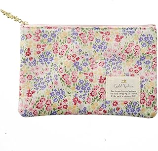フラットポーチ フェアリータウン 花柄 フラットポーチ モバイルポーチ 化粧ポーチ 薄型 軽量 文具ケース 通帳ケース パスポートケース コスメポーチ マスクポーチ かわいい おしゃれ 日本製 (パープル・ピンク・ブルー) 母の日
