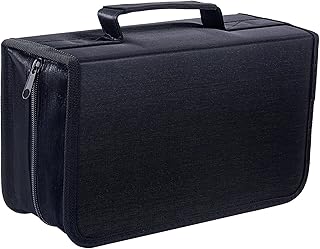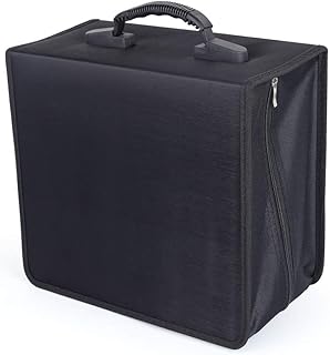 Siveit 400枚収納 CD DVDケース メディア収納バッグ ハンドル付 ウォレットタイプ (ブラック)