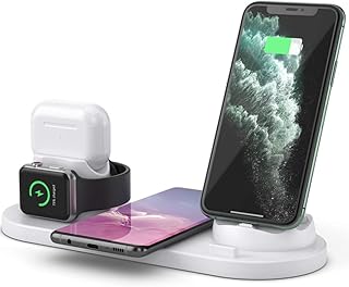 ワイヤレス充電スタンド AEOEO Airpods pro/iPhone/Apple Watch充電器 4in1 急速充電器 置くだけ充電 ワイヤレス充電器iPhone 13/ iPhone 11 / 11 Pro/XS/XS Max/XR/ 8 / 8 Plus、Galaxy S10 / S10+ / S9 / S9+/S8 / S8+/Note 9 などにも対応 その他Qi対応機種も適用(ホワイト)