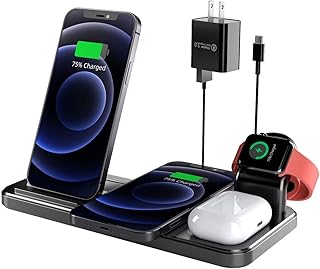 Amazon.com: 急速ワイヤレス充電器 AEOEO 2021年最新版(iWatch充電改善) 4 in 1 ワイヤレスチャージャー 2台の携帯電話 /Airpods Pro/iWatch5(OS6) 急速充電 出力最大15W (黒) : Electronics この3in1ワイヤレス充電器はApple Watch、AirPods、iPhoneやそのほかのQI対応スマホに向けた設計をし、たった一つのコードから充電できます。 本製品はそんな面倒な配線接続の必要が無く、一本の配線で使用できます。 今まで絡み合っていた配線もスッキリし、置くだけで充電可能になります。 また、充電ケーブルの抜き差しの必要がありませんのでケーブルが痛む事もありません。 【高品質チップ採用&多種保護】 インポート最先端チップ内蔵、放電なし・充電途切れない。 73%以上の電力転換効率があり、急速しても安定な充電を実現できます。 また、過電流、過充電、過電圧、過熱および温度制御機能、自動充電停止等機能を備えて、安全安心に充電できます。