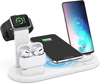 2021新開発版 ワイヤレス充電器 6in1 急速充電器 Airpodspro/iPhone/Apple Watch/Galaxy S10 / S10+充電器急速充電スタンド 急速QI ワイヤレス充電器 置くだけ充電 ワイヤレスチャージャー 10W/7.5W/5W無線充電器 Airpods Pro/iWatch5(OS6) 急速充電 Apple watch スタンド Apple Watch充電器 iPhone 12 mini/12/12 pro/12 pro max iPhone 11 / 11 Pro/XS/XS Max/XR/ 8 / 8 Plus、Galaxy S10 / S10+ / S9 / S9+/S8 / S8+/Note 9 などにも対応 その他Qi対応機種も適用【1年安心保障付き】
