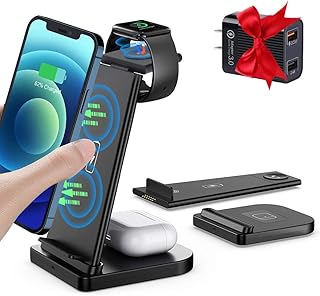 【15W急速充電】ワイヤレス充電器 3in1 qi 充電器 置くだけ充電 折り畳み式【QC3.0 30W 2ポート充電器付属(贈答) 15W/10W/7.5W/5W Qi 充電スタンド ワイヤレスチャージャー Apple Watchスタンド Airpods充電器/Apple Watch充電器 iPhone 13/12 / 12 Pro / 12 Pro Max / 11 / 11 Pro / Pro Max / Galaxy S20 /S10 / S10+ / S9 / Note 10/Apple AirPods 2 / AirPods Pro 対応