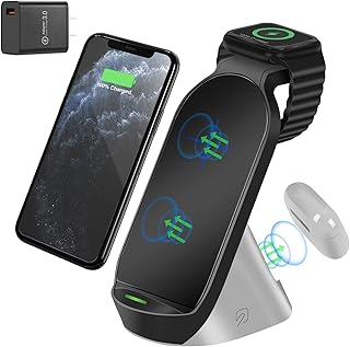 ワイヤレス充電器 AEOEO 2020年最新版 QC3.0アダプター付属 TYPE-C ケープル 急速充電 3 in 1 充電スタンド 多機能 充電ベース Apple watch スタンド Apple Watch充電器 ワイヤレスチャージャー 出力最大15W まで iPhone 12/iPhone 13/iPhone 11 / 11 Pro / 11 Pro Max/XS/XS Max/XR/X / 8 / 8 Plus、Galaxy S10 / S10+ / S9 / S9+/Note 10 などにも対応
